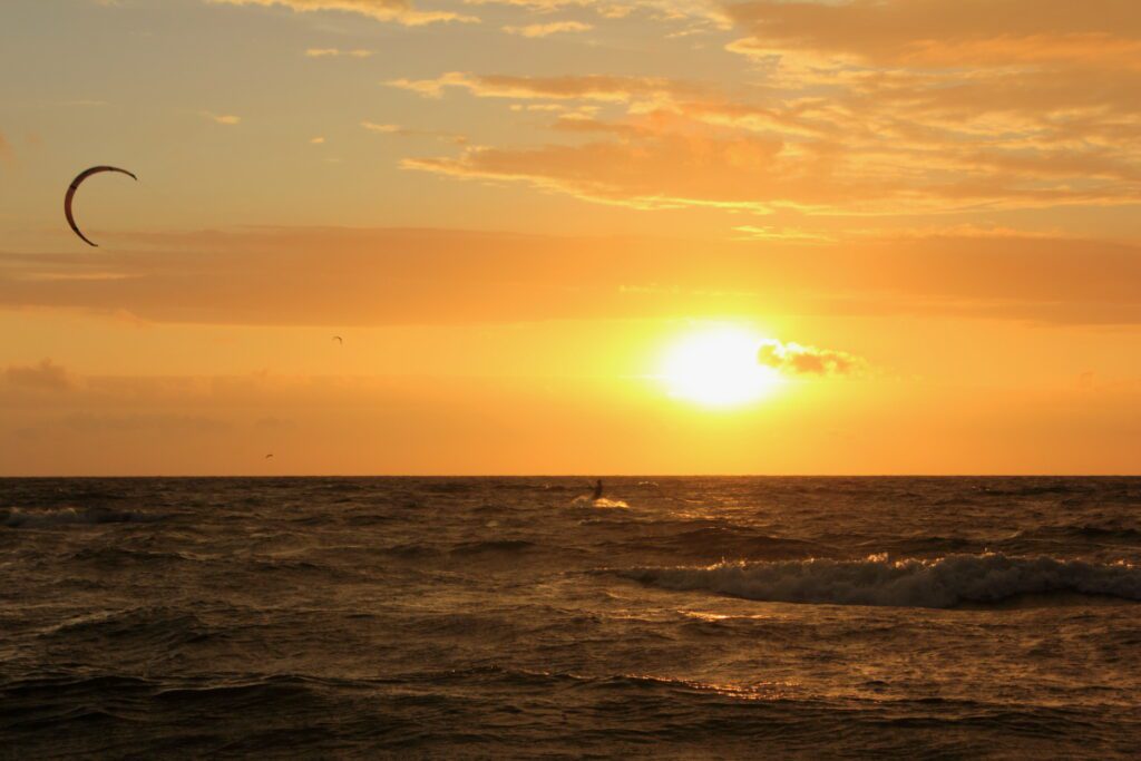 W dni słoneczne słońce „topi się” powoli w morzu, a niebo jest wypełnione łuną, która trwa jeszcze długo po zachodzie. Wtedy na zdjęciach fotograficznych zauważymy wyraźne cienie postaci ludzkich, mew, czy żaglówek. W taki szczęśliwy czas zachęcam do późniejszych spacerów, po zachodzie. Jeszcze dość długo będzie w miarę jasno. Wspomnienia takich chwil pozostają w pamięci na długo.