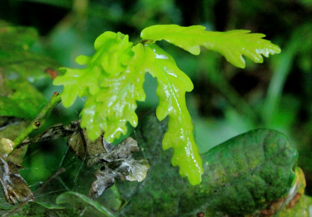 Świeże dębowe listki wyglądają, jakby je ktoś wyciągnął z wody.