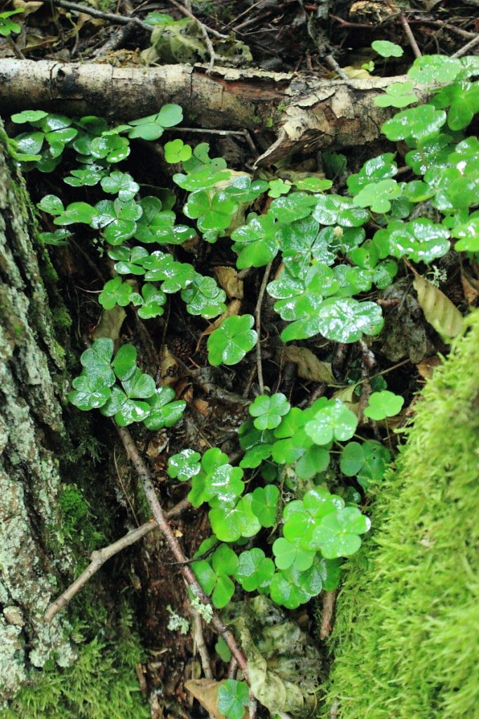 Z lewej szczawik zajęczy, jadalny, ale lepiej nie przesadzać z ilością. Nie rozpoznaję tej rośliny z prawej. W każdym razie jest fotogeniczna.