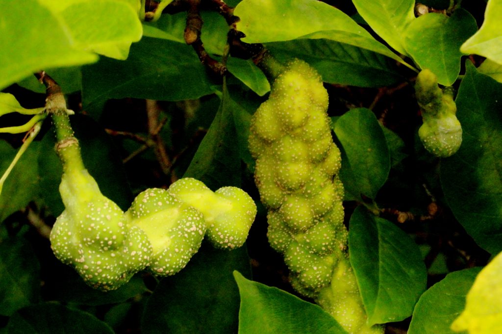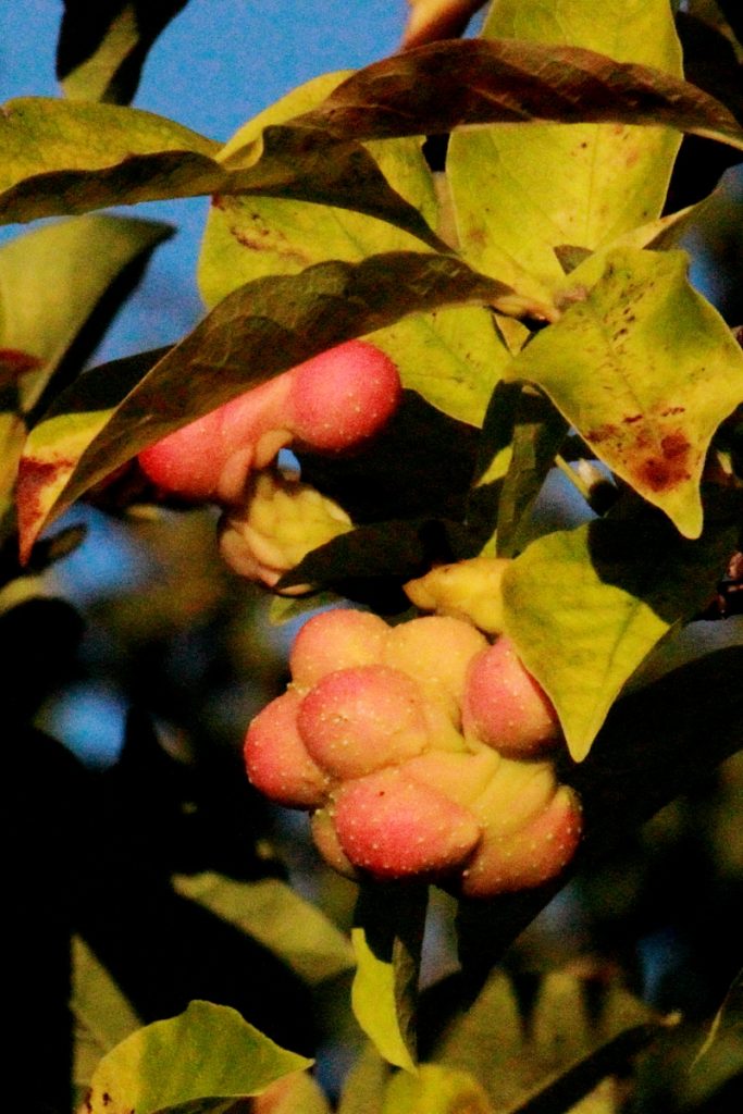 Mało znane są owoce magnolii, które możecie zobaczyć na moich zdjęciach. We wrześniu i październiku widać je wśród liści tego drzewa. Botanicznie nazywa się je szyszkami. Jak dojrzeją, pęka osłonka i pokazują się czerwonawe nasiona.