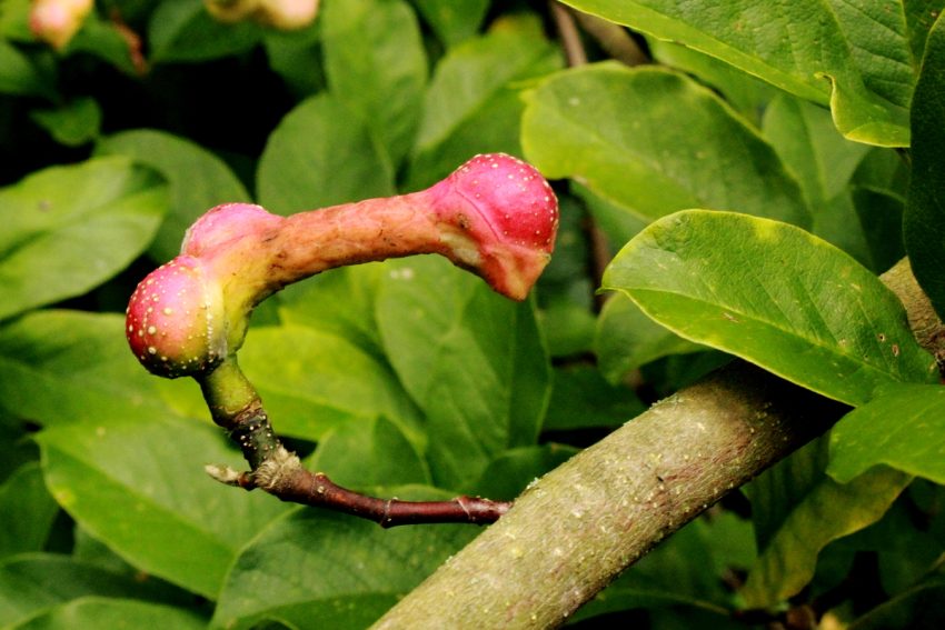 Mało znane są owoce magnolii, które możecie zobaczyć na moich zdjęciach. We wrześniu i październiku widać je wśród liści tego drzewa. Botanicznie nazywa się je szyszkami. Jak dojrzeją, pęka osłonka i pokazują się czerwonawe nasiona.