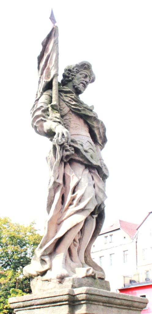 Św. Wacław, książę z dynastii Przemyślidów. Przypomina o czeskiej części historii Ziemi Kłodzkiej.