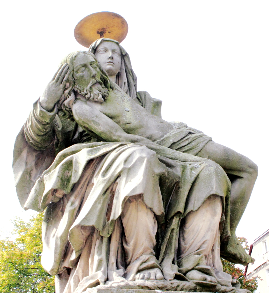 Na moich zdjęciach, prócz pierwszego poniżej, zabytkowe kamienne figury stojące na tym moście. Ufundowali je znaczniejsi mieszkańcy Kłodzka i okolic. Te barokowe figury postawiono w XVIII wieku, poza Pietą, która pochodzi z wieku XVII.
