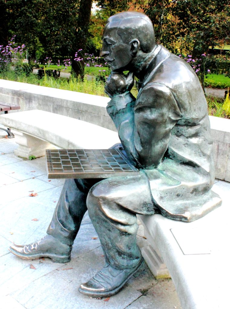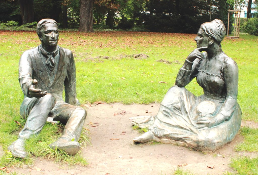 Rzeźby: arcymistrza szachowego z początku zeszłego wieku, Akiby Rubinsteina oraz naszego wieszcza narodowego, Adama Mickiewicza.