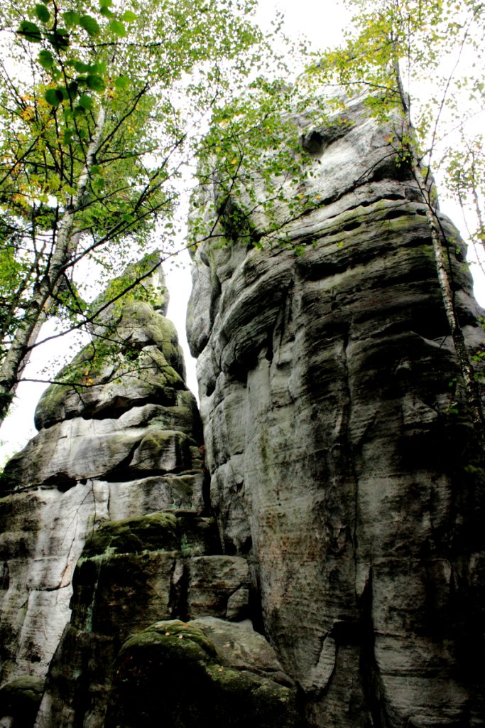 Na zdjęciu tytułowym przewrócone drzewo. Na jego systemie korzeniowym wyrosły już młode drzewka. Zadziwiająca żywotność Gór Stołowych. A dalej: