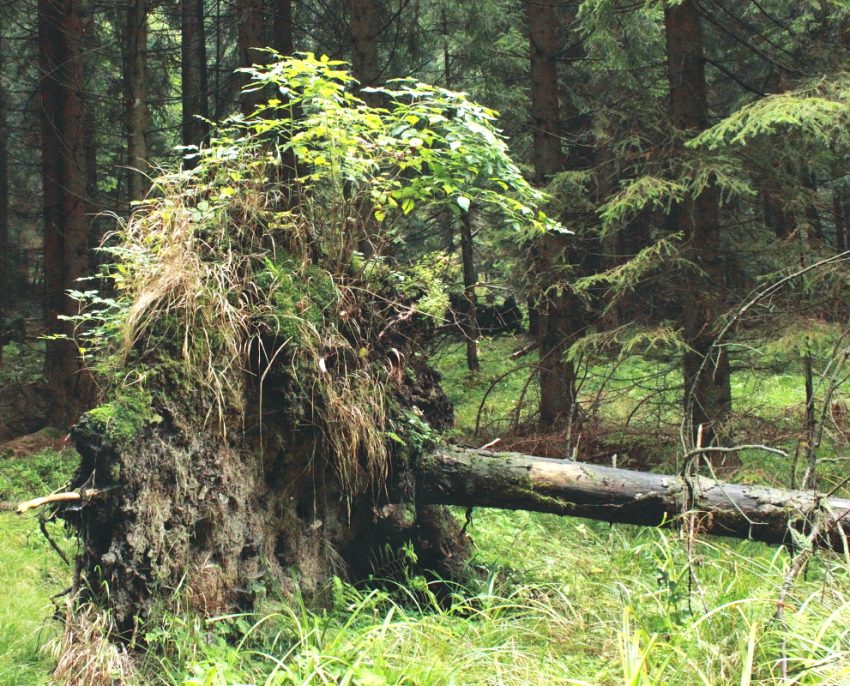 Na zdjęciu tytułowym przewrócone drzewo. Na jego systemie korzeniowym wyrosły już młode drzewka. Zadziwiająca żywotność Gór Stołowych. A dalej: