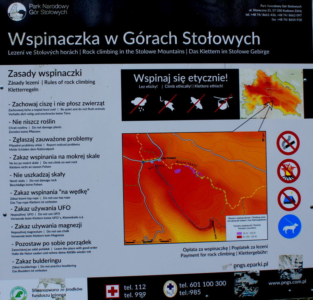 Zwróćcie uwagę, że niemal ponadczasowa jest rada, by w Górach Stołowych nie korzystać z UFO, magnezji i bulderingu.