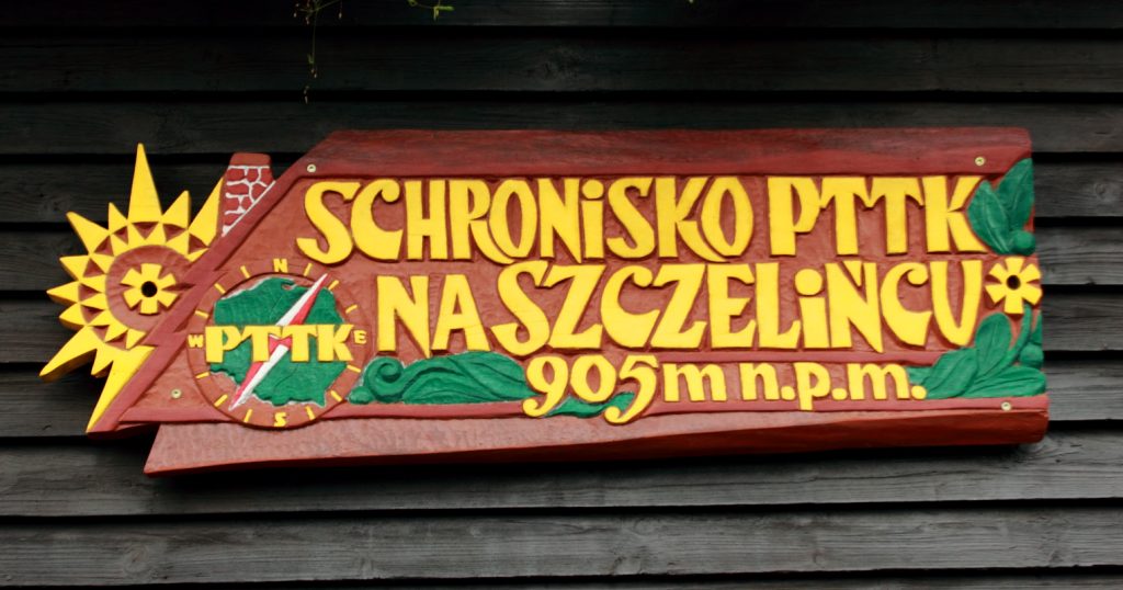 Szyld Schroniska PTTK na Szczelińcu opisuje konkretny budynek, w którym , albo wypić kawę po trudach wspinania się. Może też oznacza, że jesteśmy tuż pod szczytem i już koniec wysiłku wchodzenia pod górę. Zaraz będziemy na punkcie widokowym.