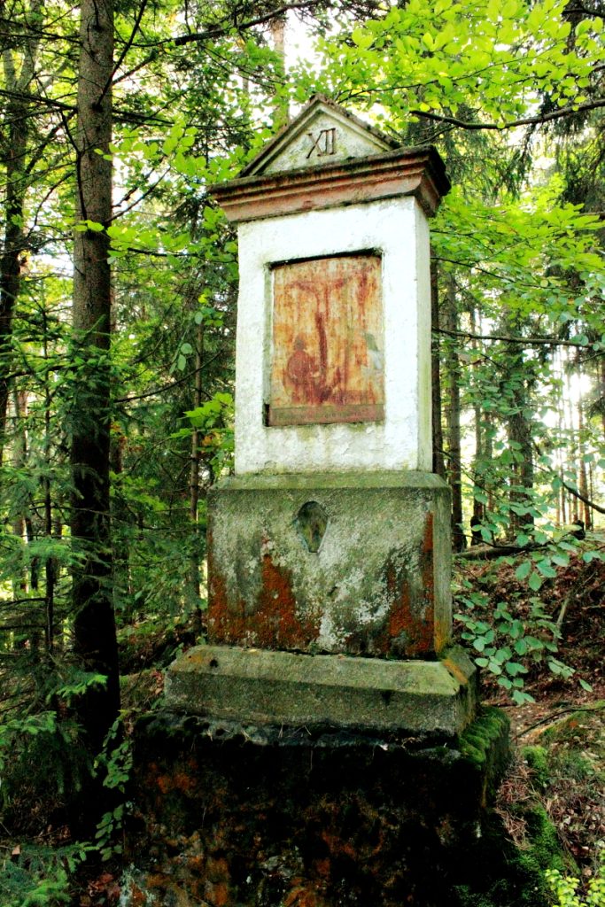 Stacja drogi krzyżowej w Batorowie. Przez lata malowidło na blasze niemal całkiem zanikło.