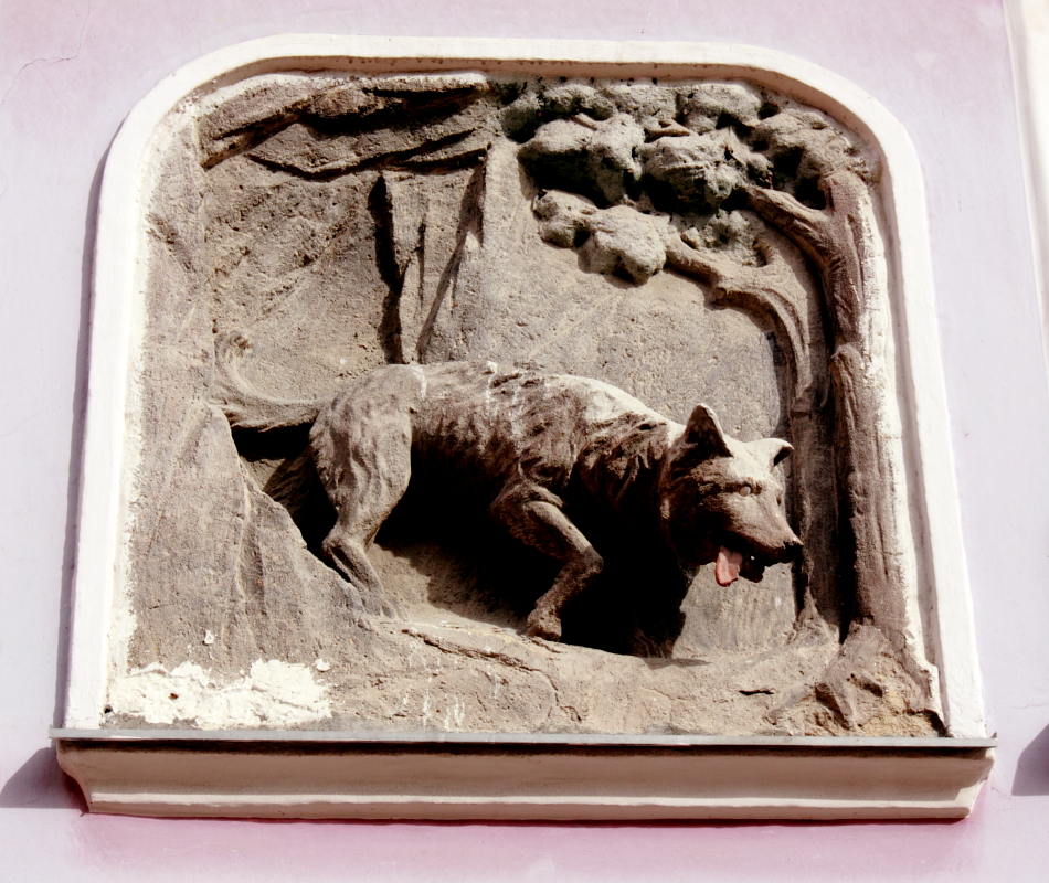Na koniec płaskorzeźba wilka, która znajduje się między oknami, na pierwszym piętrze jednej z kamienic w Kłodzku.