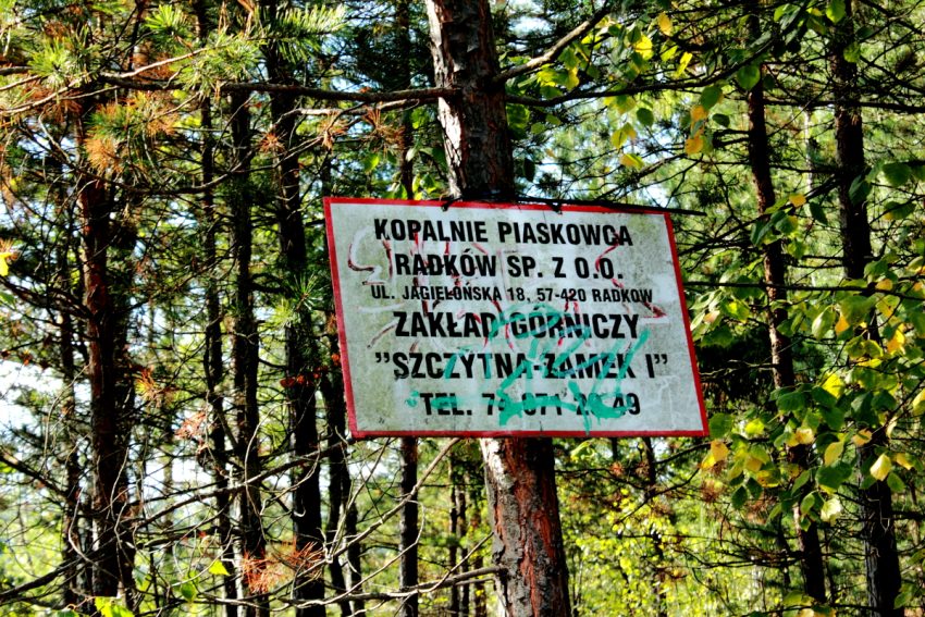 Niewinne ostrzeżenie przed przepaścią. To ze zdjęcia poniżej ma związek z fotką tytułową dt. kopalni. Kopalnia ta jest wielką dziurą o stromych ścianach.