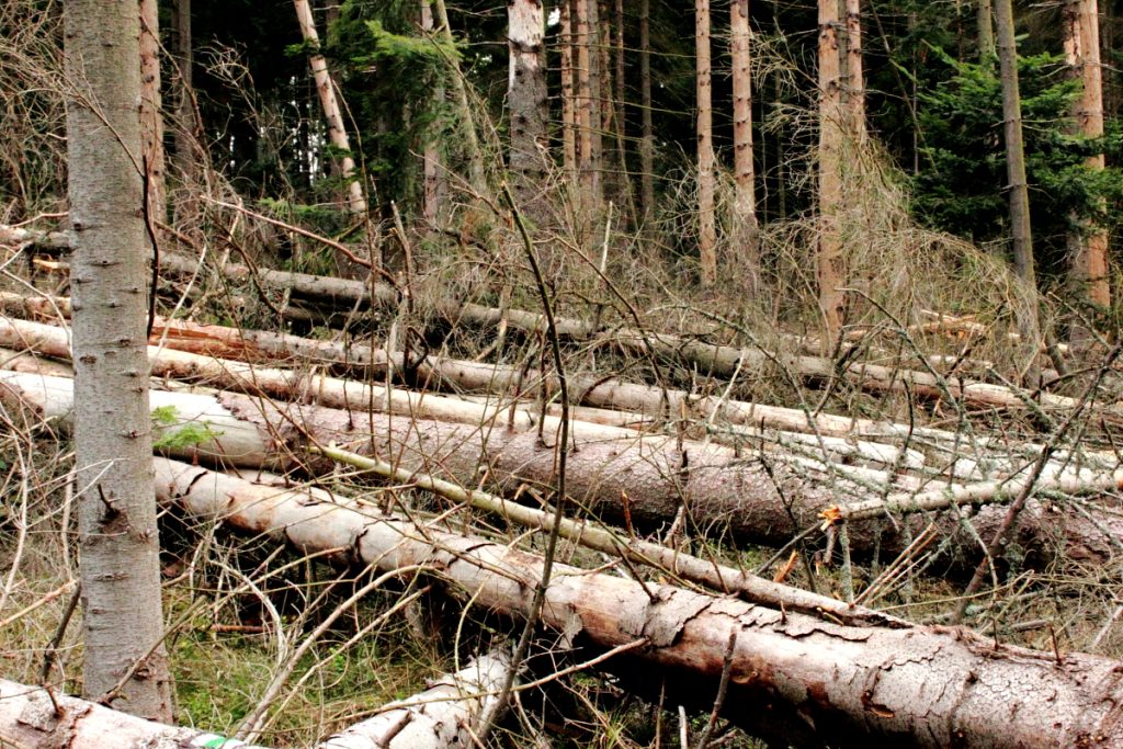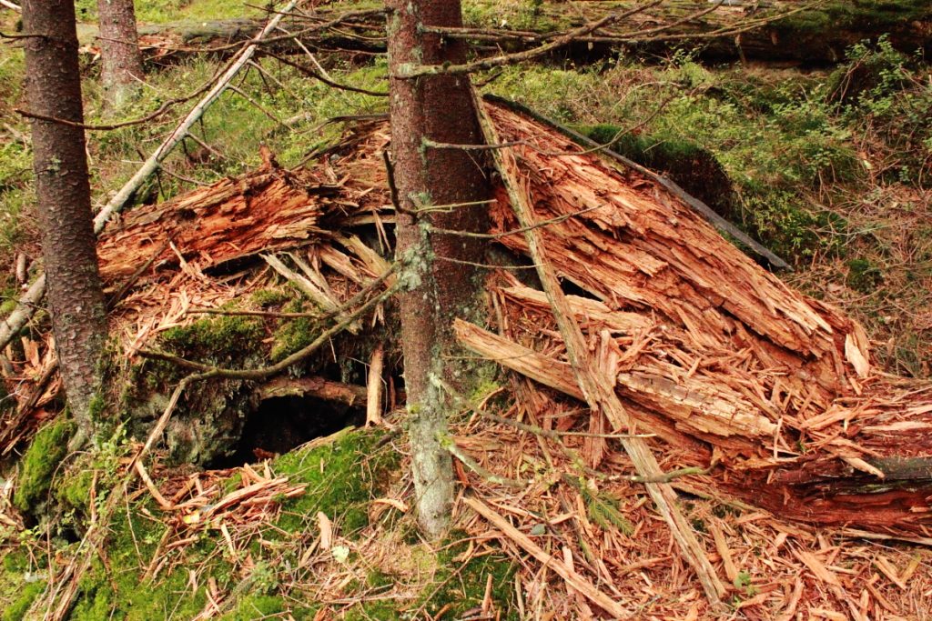 Ze szlaków turystycznych między osadą Pasterka, a Błędnymi Skałami, widać skutki działania silnych wiatrów. Na wyższych górskich zboczach złamane drzewa, a nawet wyrwane z korzeniami. Współtowarzysz wędrówek stwierdził, że to smutne.