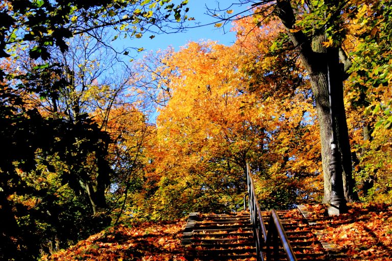 W listopadzie już rzadsze są pogodne dni. Niemniej, zdarzają się. Gdy w dzień słońce rozświetla bezchmurne niebo albo przy niedużym zachmurzeniu, szczególnie warto wybrać się na spacer „wśród barw złotej jesieni”. Albo nawet pędząc do pracy, czy na zakupy, popatrzeć na otaczający świat. Czas kolorowej jesieni szybko się skończy. W grudniu już coraz mniej słonecznych…