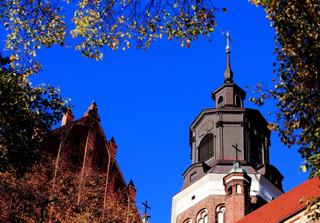 Z lewej Baszta Morze Czerwone (XV,XVI w.), a po prawej Kościół pw. św. Jana (XV w., wieża ma 99 m wysokości).