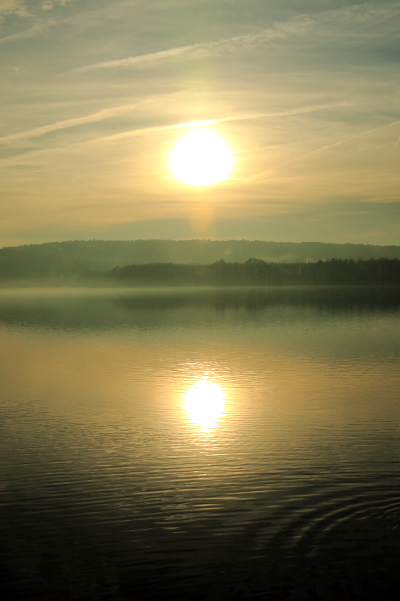 Zdjęcie wykonałem 17 grudnia 2019 roku nad J. Miejskim w Chodzieży, inaczej nazywane Chodzieskim. Wtedy był ranek. Na fotce widać wschodzące we mgle słońce.