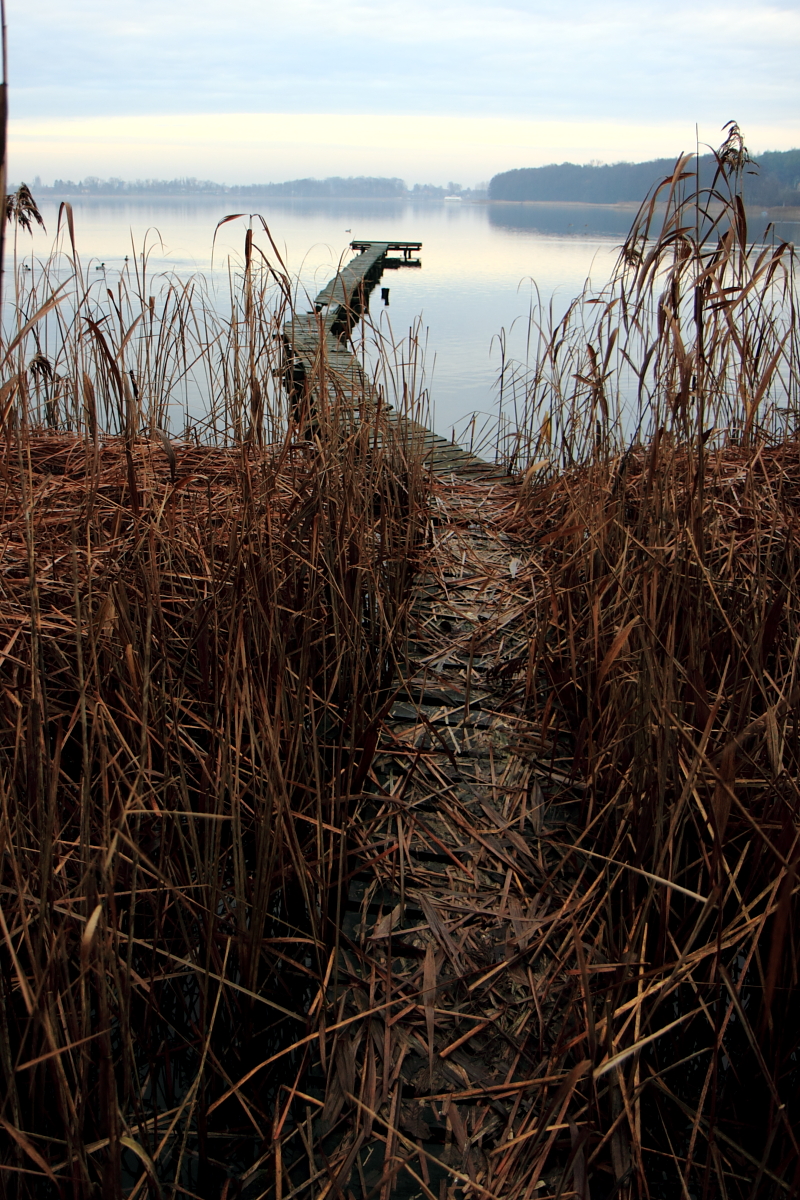 Tytułowe zdjęcie fotograficzne pokazuje oczom kierunek. To za sprawą pomostu biegnącego dość daleko w głąb jeziora w Chodzieży, wielkopolskie.