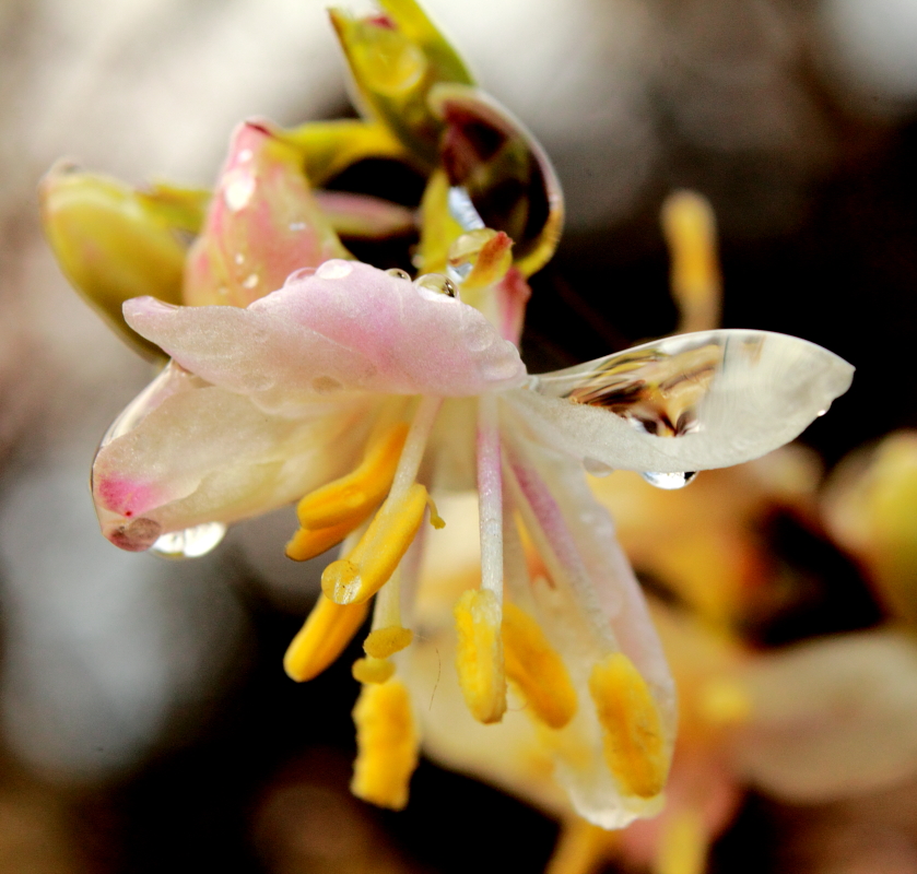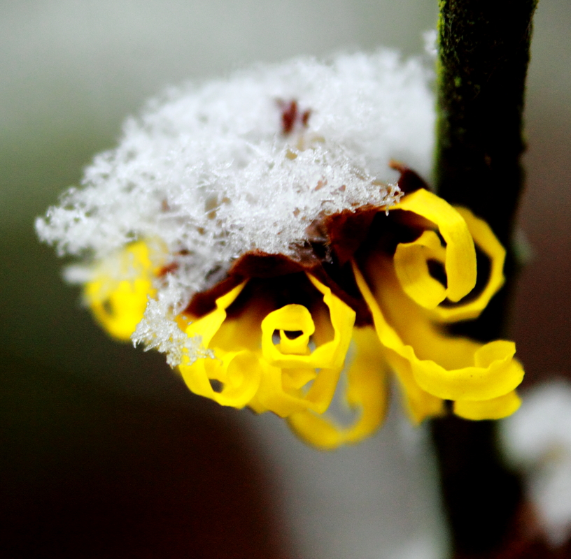 Na drugim zdjęciu poniżej śnieżynki na kwiecie oczaru japońskiego. Czarujące, prawda?