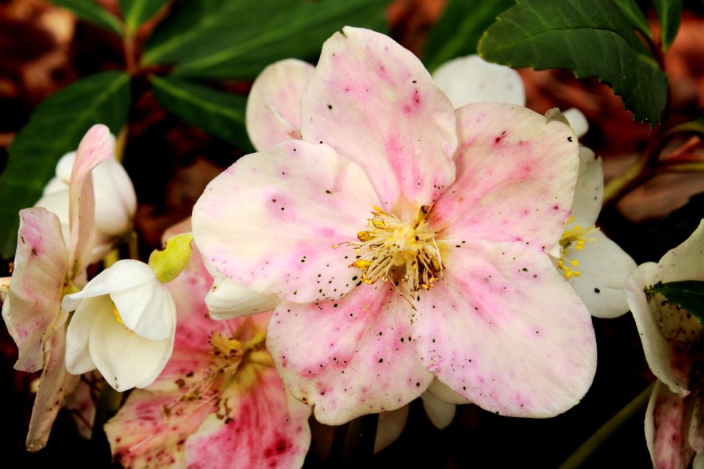 Ciemiernik biały. Niektóre jego odmiany zakwitają już w cieplejsze grudnie (np. Christmas Caroll), gdy nie ma mrozów. Swoje kwiecie utrzymują także w styczniu. Kwiaty bywają jakby z ubytkami, z kropkami i fragmentami czerniejące. Taka jest cena ich zimowego rozkwitu.