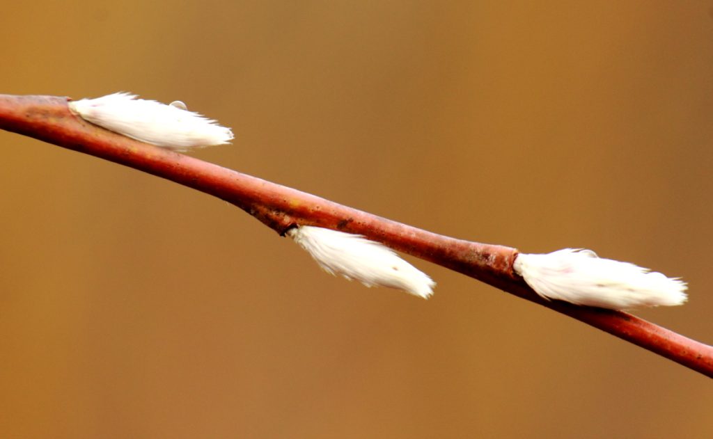 Na kwaterze z baziami w styczniu potrafią pojawić się już kotki. To, co widać, jest właściwie puchową osłonką dla kwiatów. Te rozkwitają później.