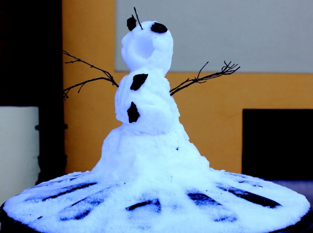 Bałwanek przypomina o śnieżnej porze roku.