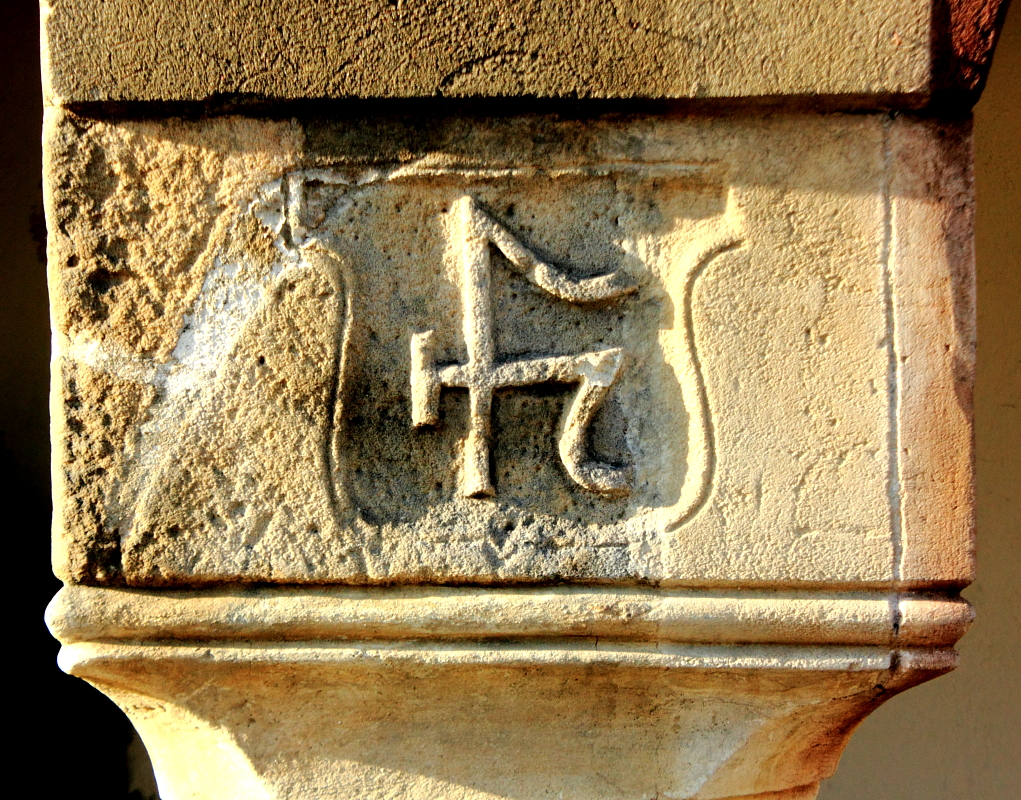 Znak na kolumnie domku budniczego wzniesionego obok Ratusza. Tajemniczy gmerek może świadczyć o rodzie właściciela, albo o jego zajęciu.