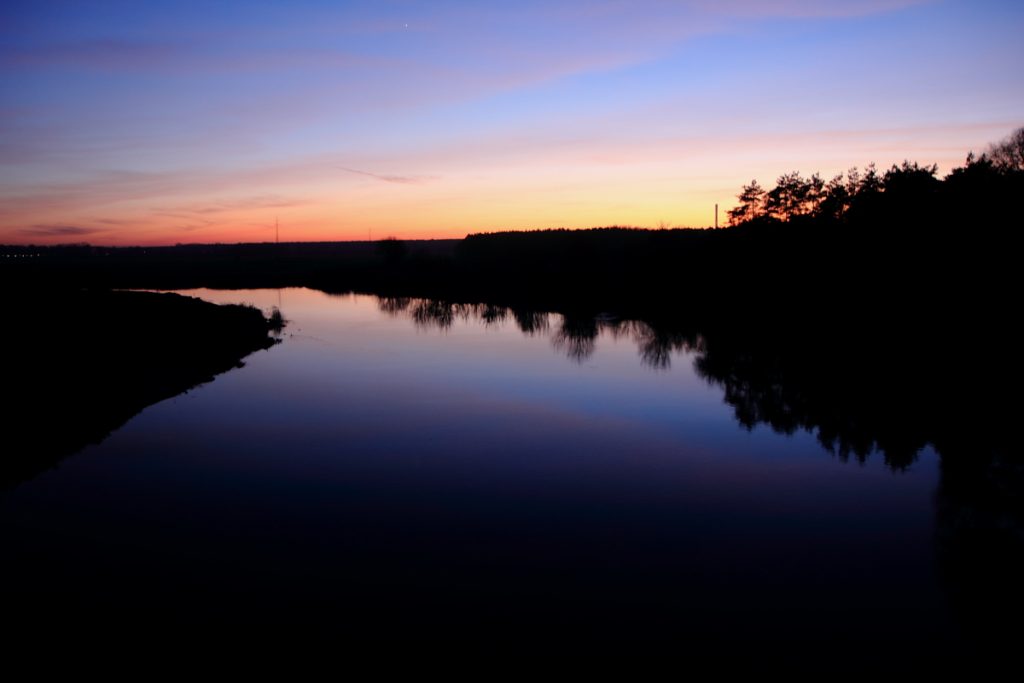 Warta rozświetlona łuną, tuż po styczniowym zachodzie słońca. Zdjęcie wykonałem z mostu w Rogalinku.