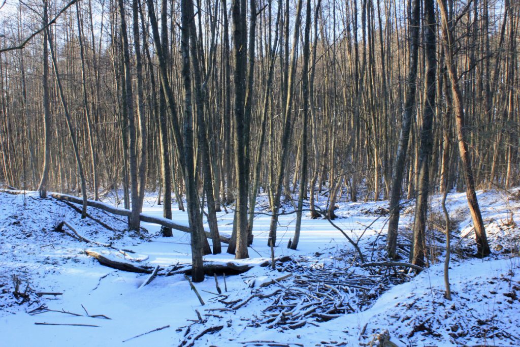 W ubiegłą niedzielę pojechałem nad niewielką rzeczkę, Młynówkę, która jest dopływem Warty. Wypływa ona z poligonu wojskowego Biedrusko. Po niewielu kilometrach meandrując trafia w dolinę Warty. To nieco na północ i wschód od Radojewa, w kierunku Warty. Na tym odcinku, tj. w dolnej części swego biegu, nabiera tempa. Zapewne ta jej cecha, bystrość płynącej wody, jest przyczyną powstania nazwy, Młynówka. Dziś nie zobaczy się tam żadnego młynu. Za to sporo tam bobrowych, a przed nimi wodne poszerzenia na rzeczce.