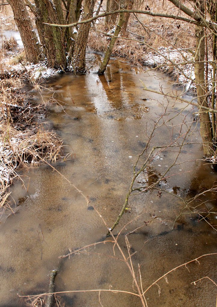 Z drugiej strony torów płynie rzeczka Pokrętna.