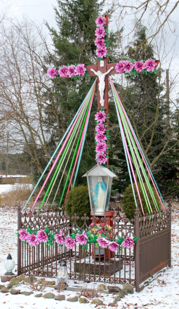 Na prawej fotografii krzyż we wsi.