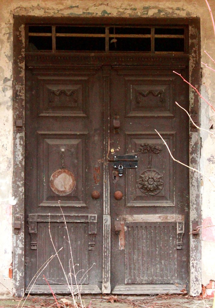 Na zdjęciu pozostałość do dawnej historii tego miejsca. Ozdobne niegdyś drzwi to pamiątka po ponad stuletnim pałacu von Treskowów.