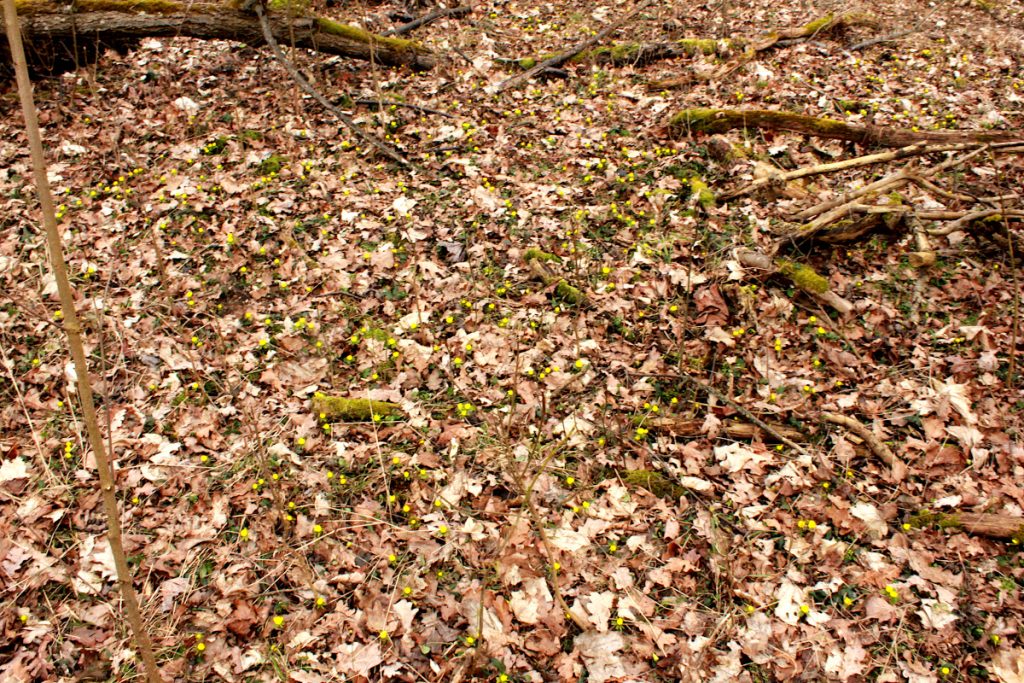 Rozpoczęliśmy ją nieprzypadkowo, w Radojewie. Zdecydowała o tym ciekawość, czy tamtejsze ranniki zimowe rozkwitły wreszcie całymi łanami na radojewskich pagórkach dawnego parku. Z autobusowego przystanku linii 167 i 911 tylko kawałek do tego rannikowego królestwa. Na mapach widać nieco mylącą nazwę, „Kokoryczowe wzgórze”.