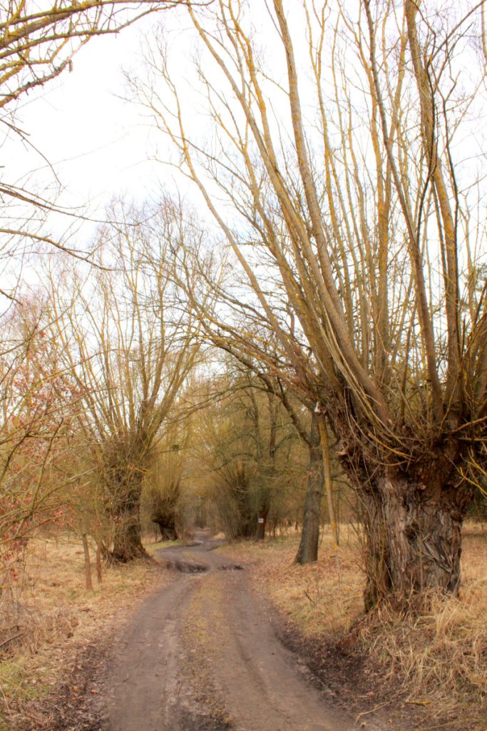 Początkowo szliśmy szlakiem w pewnej odległości od Warty. Trasa ta prowadzi fragmentami dawnymi drogami prowadzącymi niegdyś między wsiami podpoznańskimi. Potem wsie te włączono do Poznania, ale resztki wierzbowych dróg pozostały.