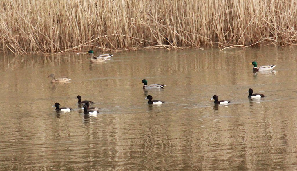 Na fotce czernice, rzadko widywane teraz kaczki. Samce mają te szczególne ubarwienie z czernią i bielą. Na głowach ładne czubki.