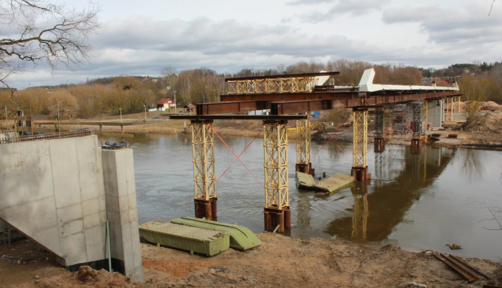 Na terenie przy Czerwonaku powoli kończy się budowa kładki pieszo-rowerowej przez Wartę. Powoli.