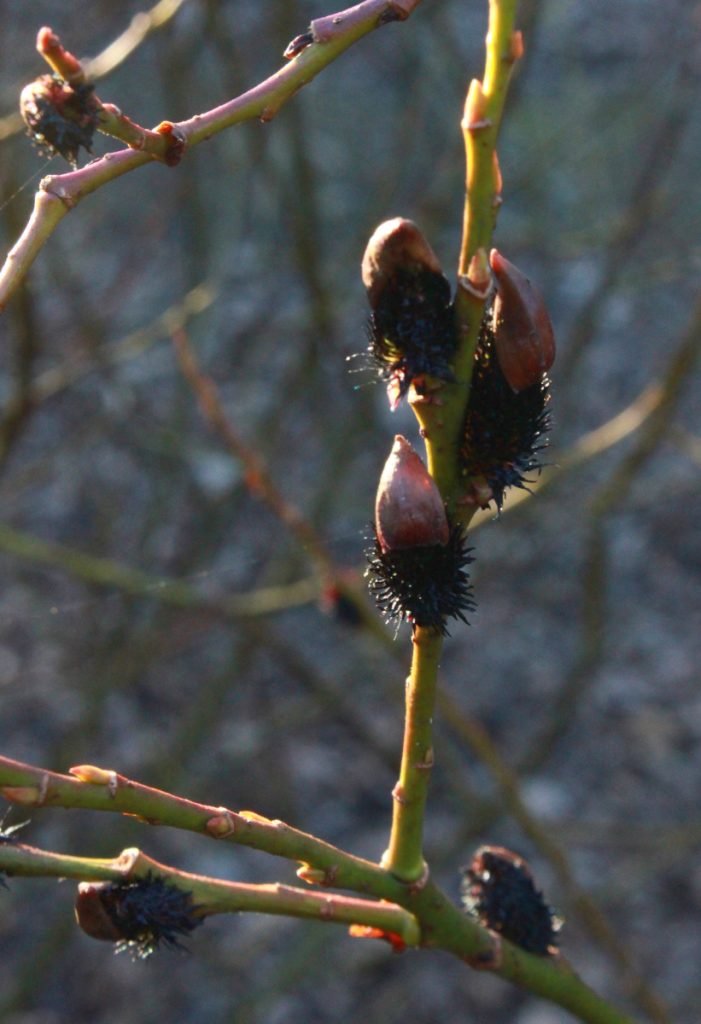Z lewej wawrzynek wilczełyko, a na prawej fotografii czarne bazie. Bazie te mają jeszcze czapeczki.