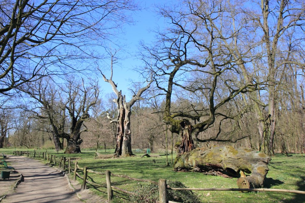 Na zdjęciu Polana Zabytkowych Dębów, na której widzicie Lecha, Czecha i Rusa. Te „starożytne” wielusetletnie drzewa odpowiadały Raczyńskim. Z dumą pokazywali je swoim gościom.