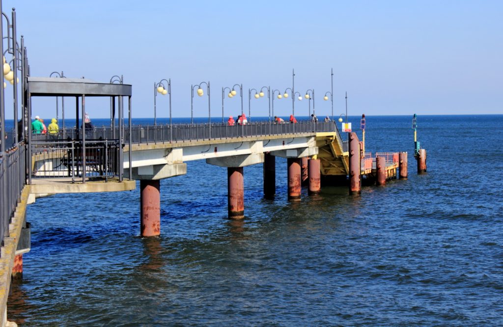 Molo w Międzyzdrojach, a właściwie, jego koniec, do którego cumują statki wycieczkowe..