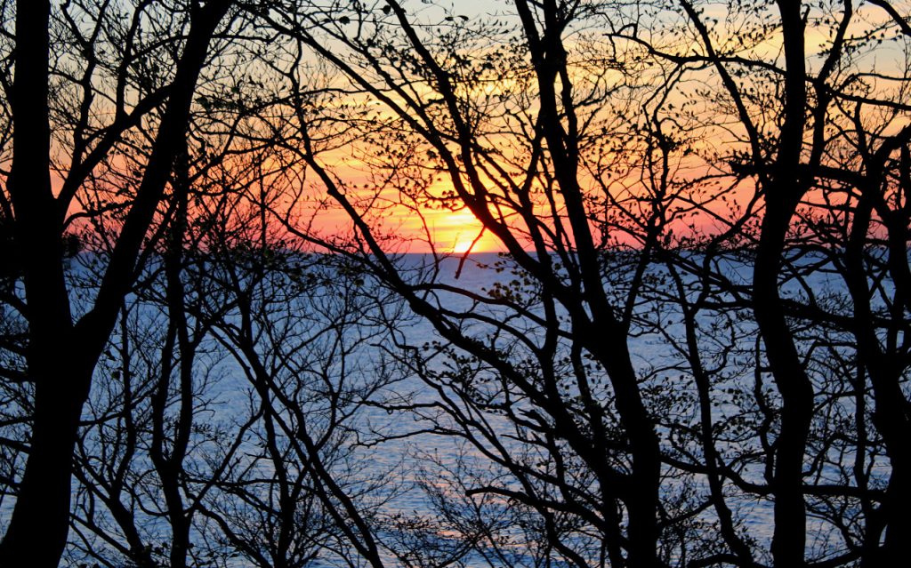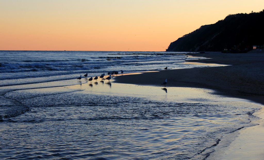 Zachód słońca nad Bałtykiem widziany z klifu nadmorskiego.