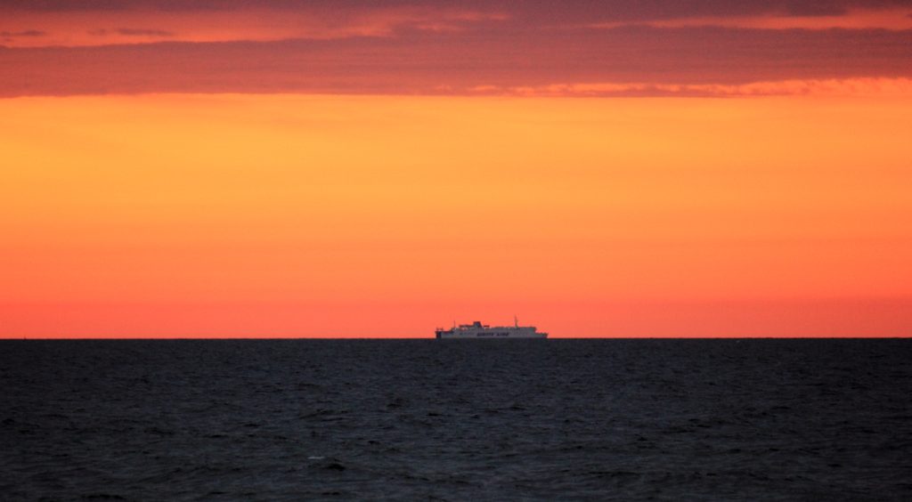 Na tle tarczy słonecznej z plaży w Międzyzdrojach dało się zaobserwować oddaloną o kilkadziesiąt kilometrów Rugię.