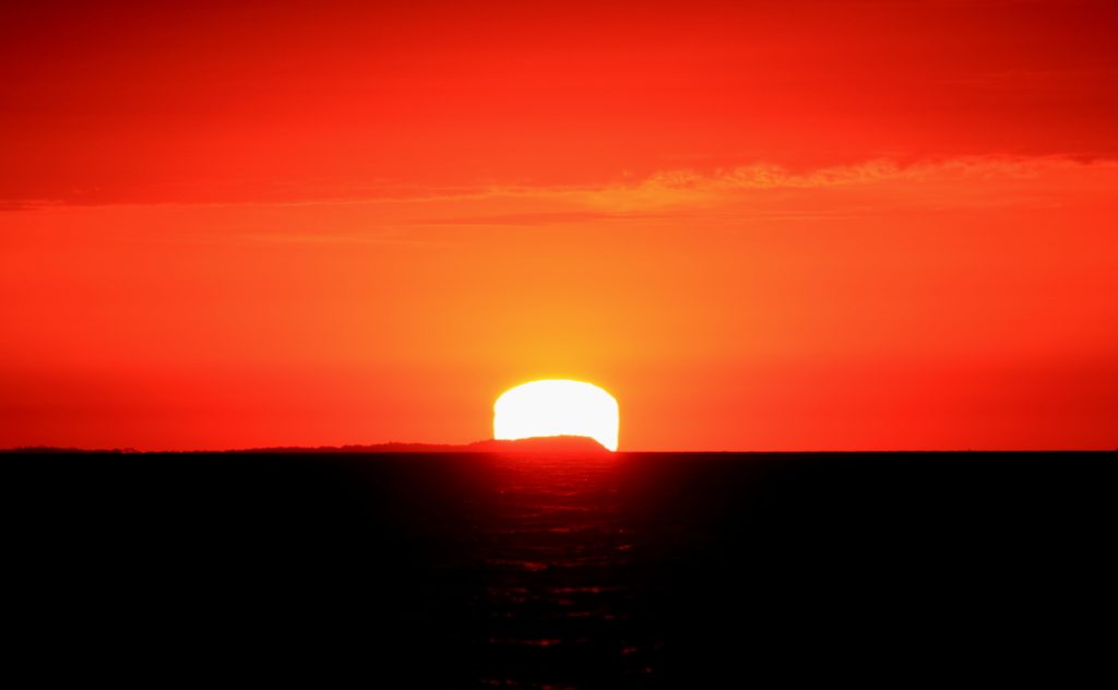 Na koniec przykład rzadkiego zjawisko refrakcji atmosferycznej. Zachodzące słońce w formie beczki.